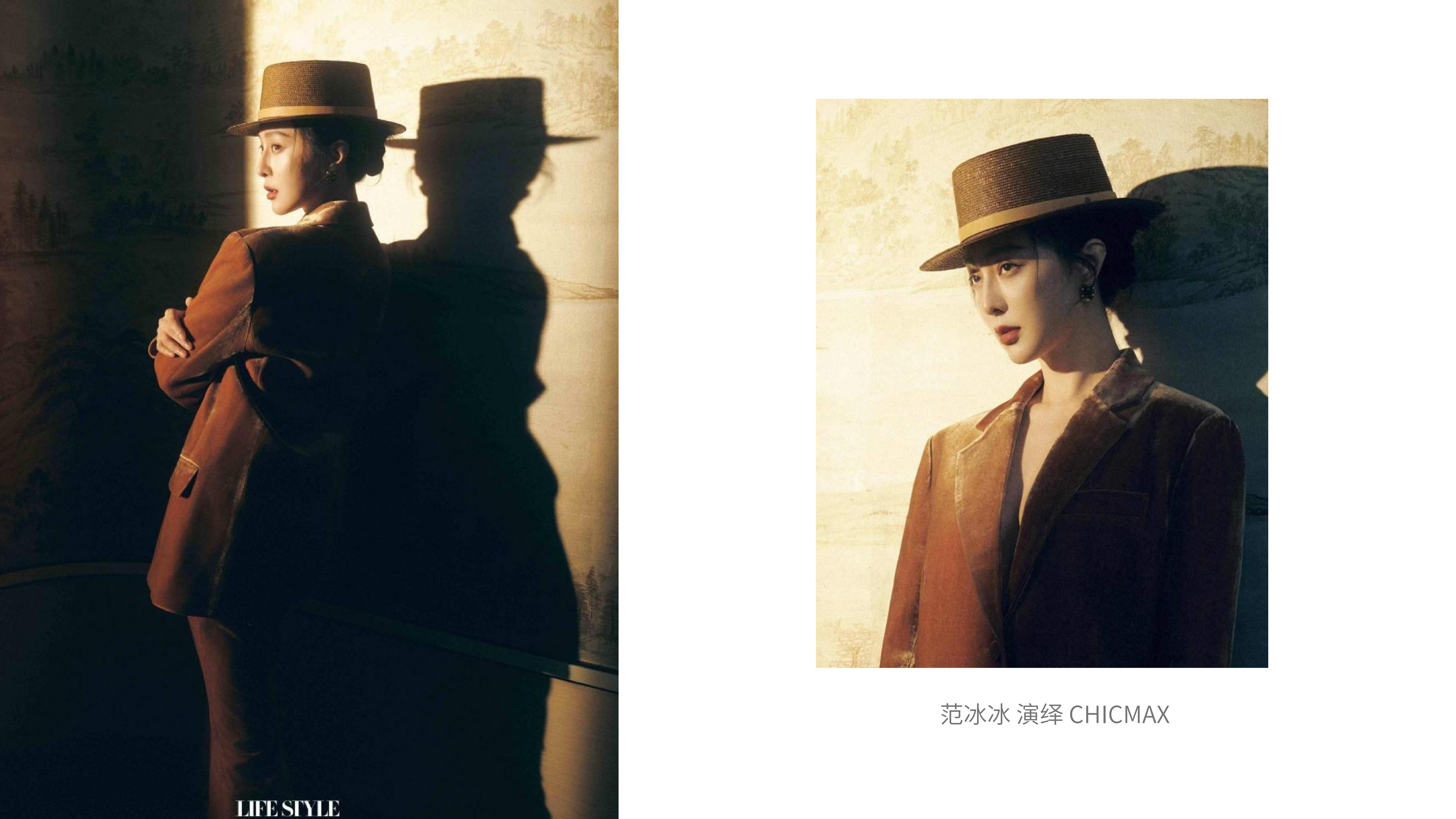 范冰冰以复古明艳之姿惊艳登场,佩戴 CHICMAX 咖色经典超细麦秆礼帽,携手解锁 “流金时代” 风尚